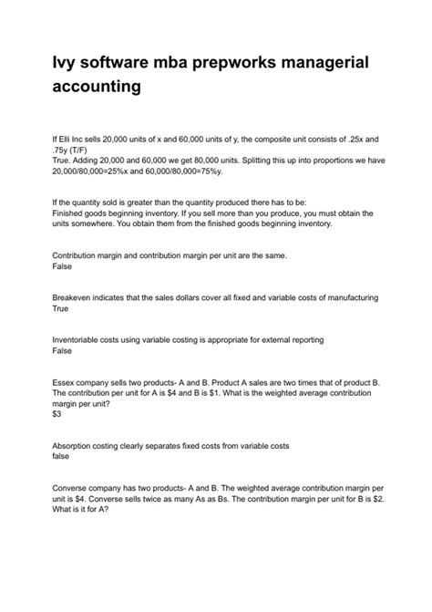 Read Online Ivy Software Test Answer For Managerial Accounting Kindle Editon